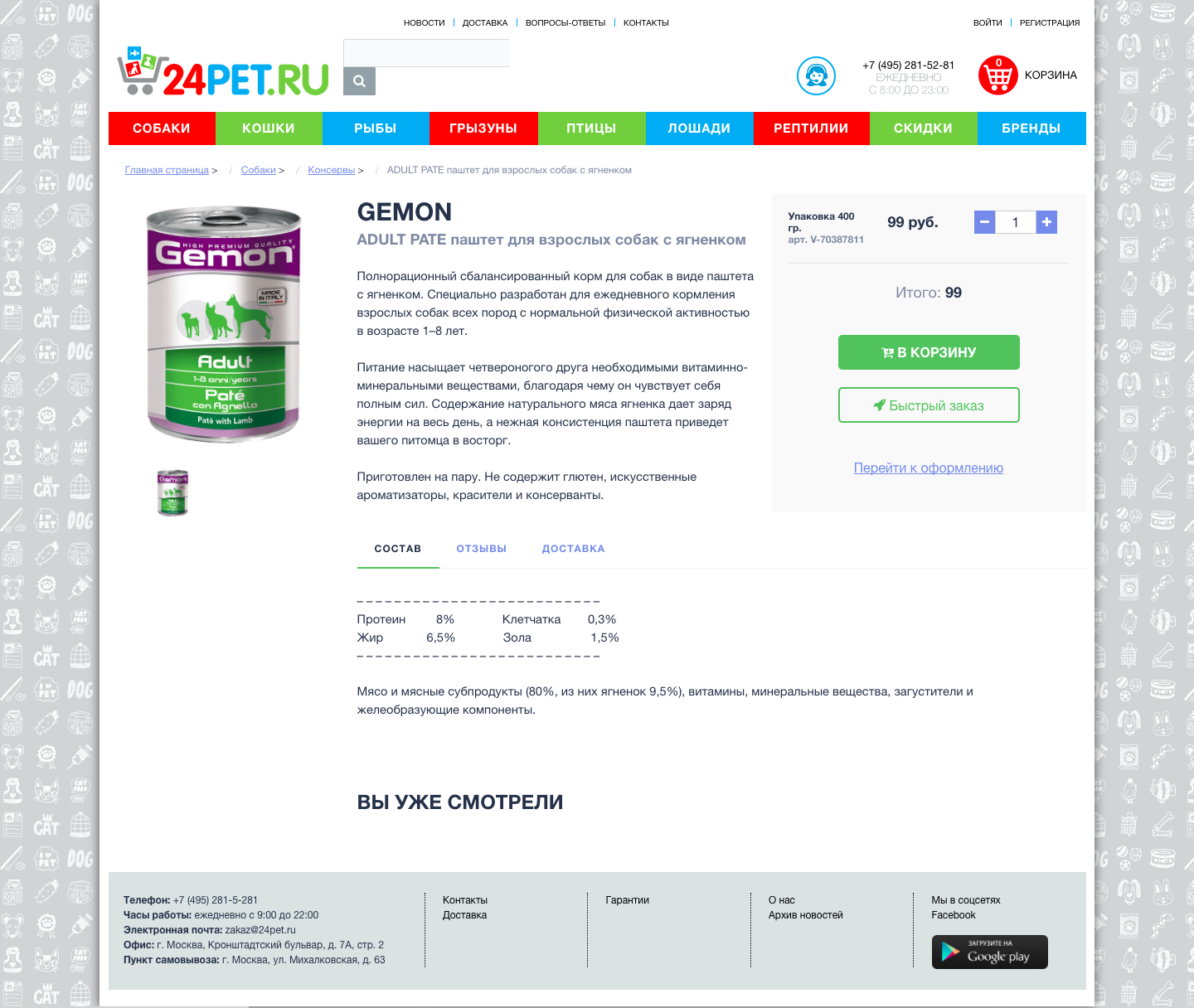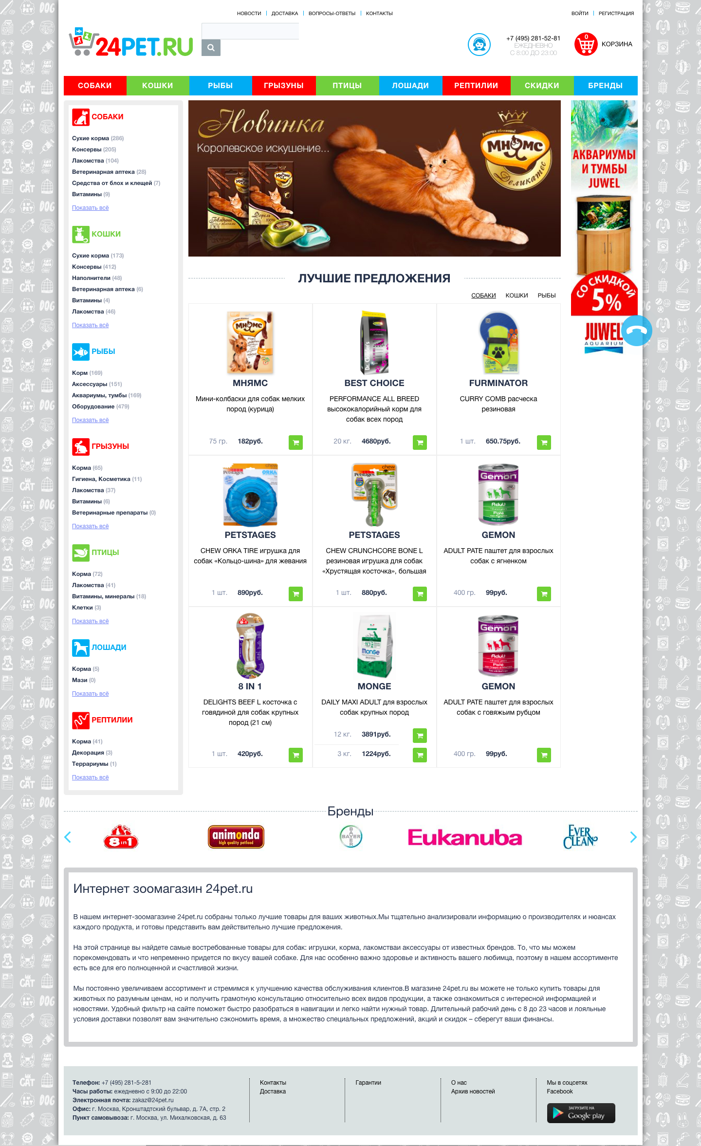 Компания 24pet.ru обратилась в Cetera с целью получить предложение по созданию и поддержке интернет-магазина по продаже зоотоваров 24pet.ru. Cetera предложили реализацию интернет-магазина по моделе «Безлимитное абонентское обслуживание». Подробнее о методологии на сайте — https://cetera.ru/about/custom-development/complexservice/.