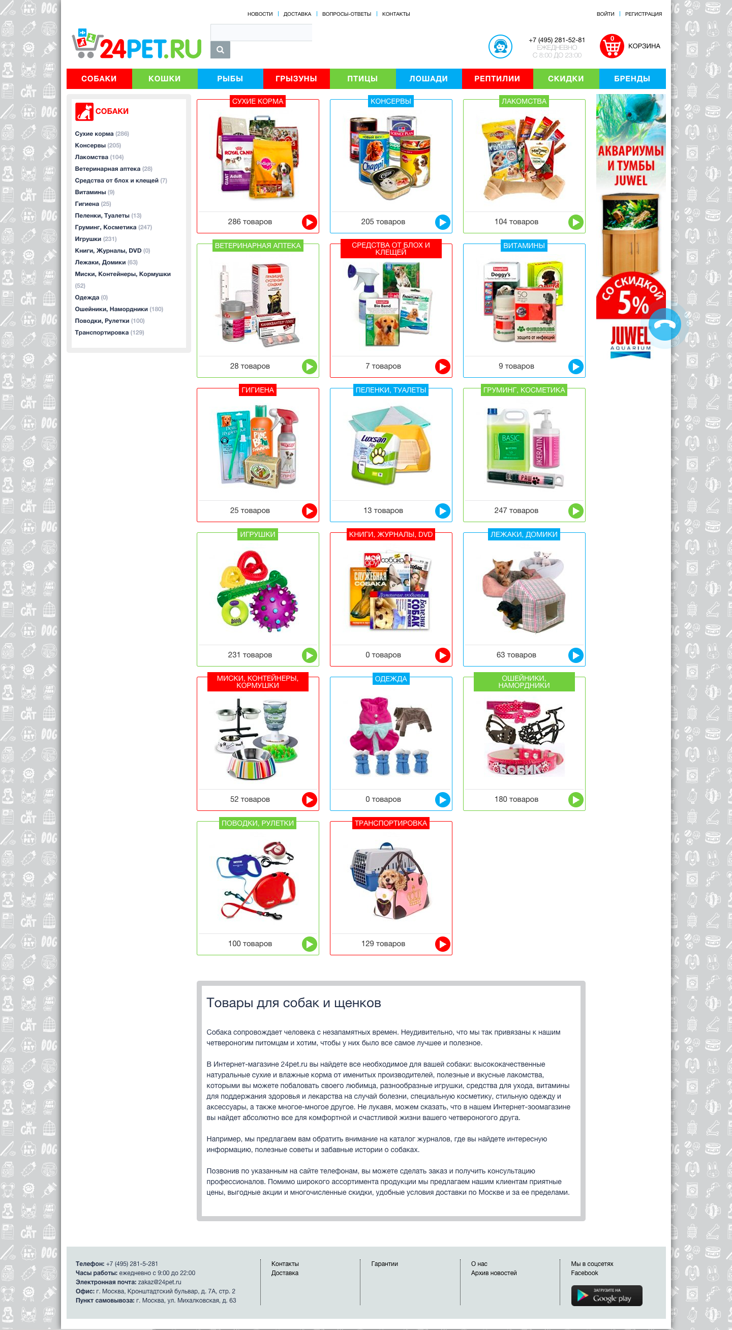 Компания 24pet.ru была основана в 1993 году, а интернет-магазин стал одним из первых магазинов. Компания специализируется на оптовой и розничной продаже зоотоваров.