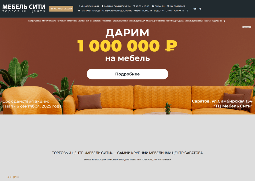 Разделы сгруппированы по запросам пользователей: каталог брендов, категории товаров, блоки с акциями, новостями и спецпредложениями.