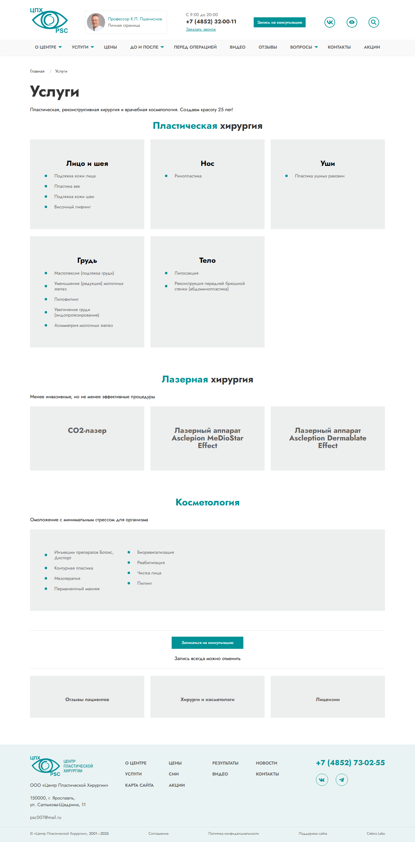 Корпоративный сайт для «Центра пластической хирургии»