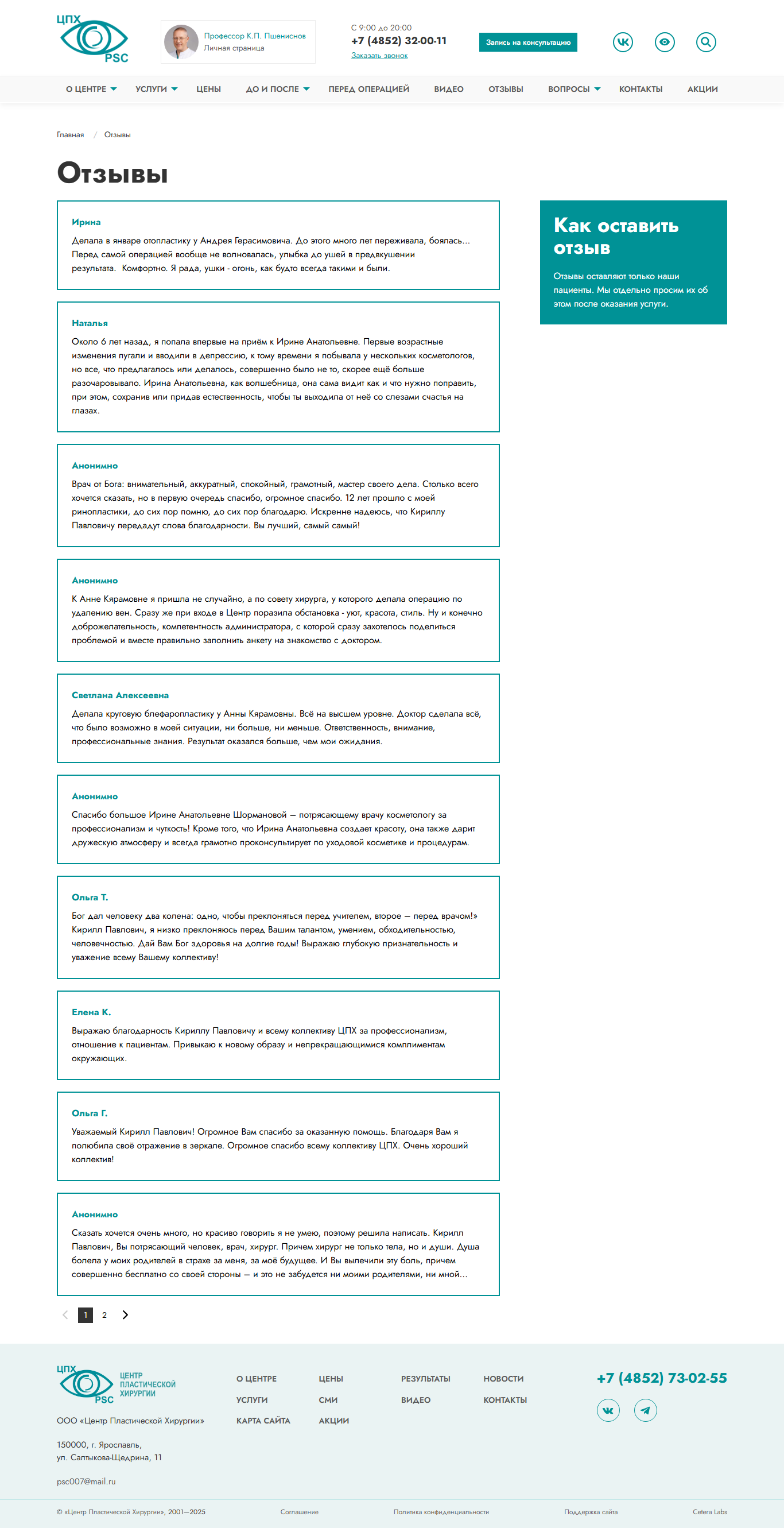 Компания Cetera реализовала проект обновления сайта Центра пластической хирургии и разработки сайтов Профессора Пшениснова по договору поддержки, действующему между сторонами с 2001 года. Уникальное для отрасли по своей продолжительности сотрудничество без изменений условий договора — типичный пример подхода компании Cetera к работе с клиентами.